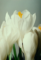 den Blütenstand eines Krokus oder sieht einen Vogel in einer offenen Irisblüte?